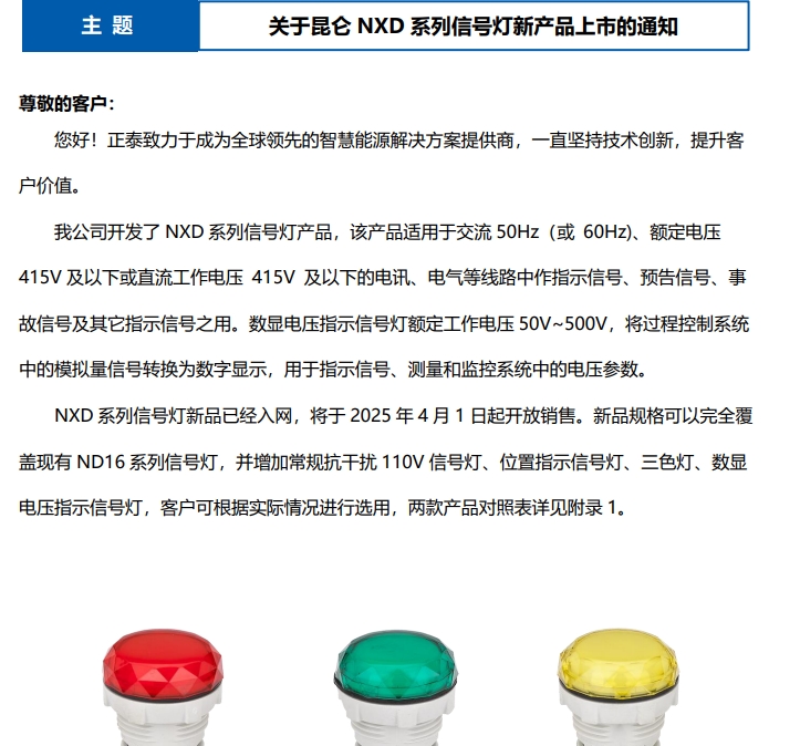 關于昆侖 NXD 系列信號燈新產品上市的通知